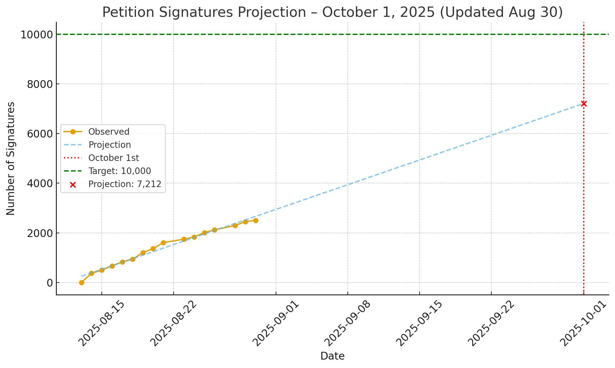 ➡ Au rythme actuel, la pétition atteindrait environ 7 212 signatures d’ici le 1er octobre 2025.